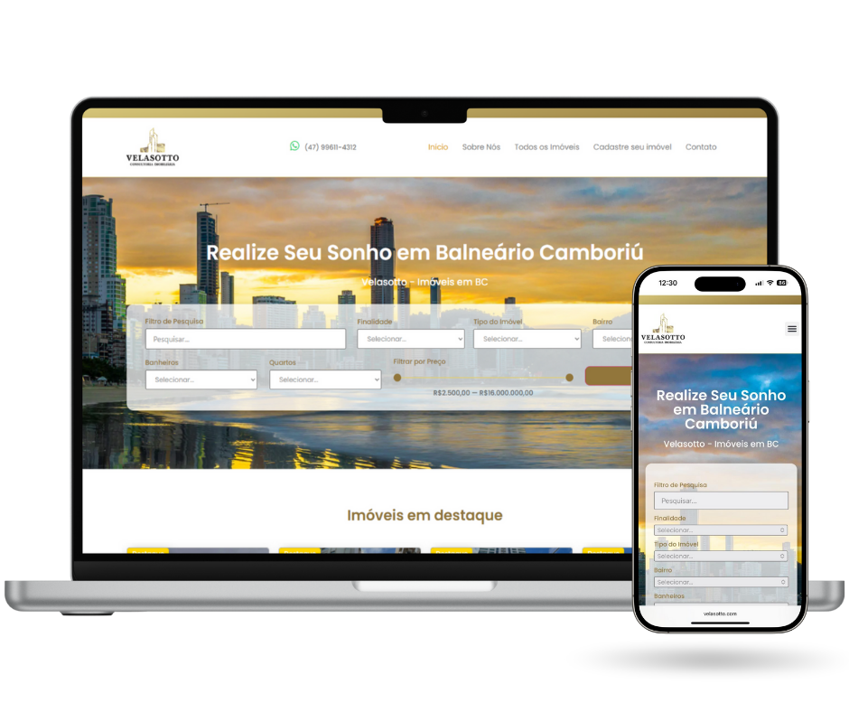 Design adaptável para todas os tamanhos de telas: desktops, tablets e smartphones.